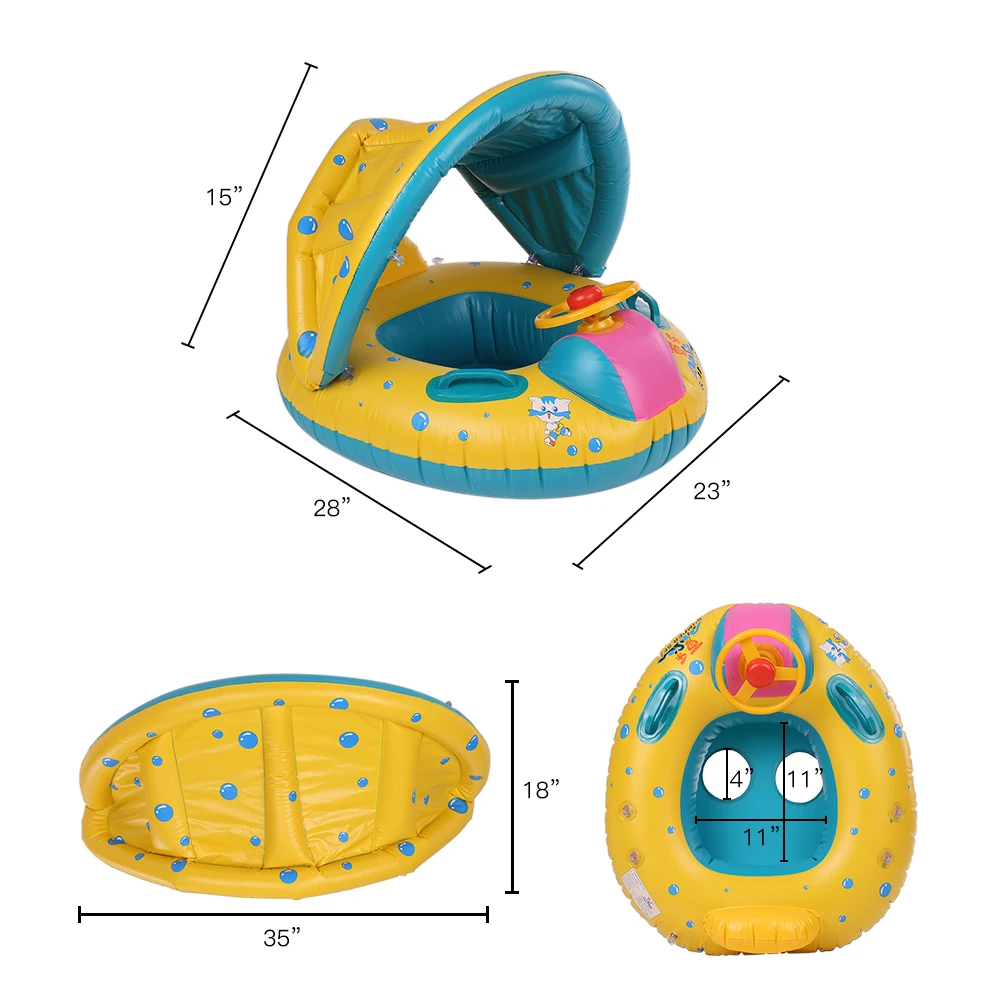 amazing Summer Baby Swimming Pool Float Boat Rider With Detachable Sun Canopy Shade Toys For Baby Kid Child